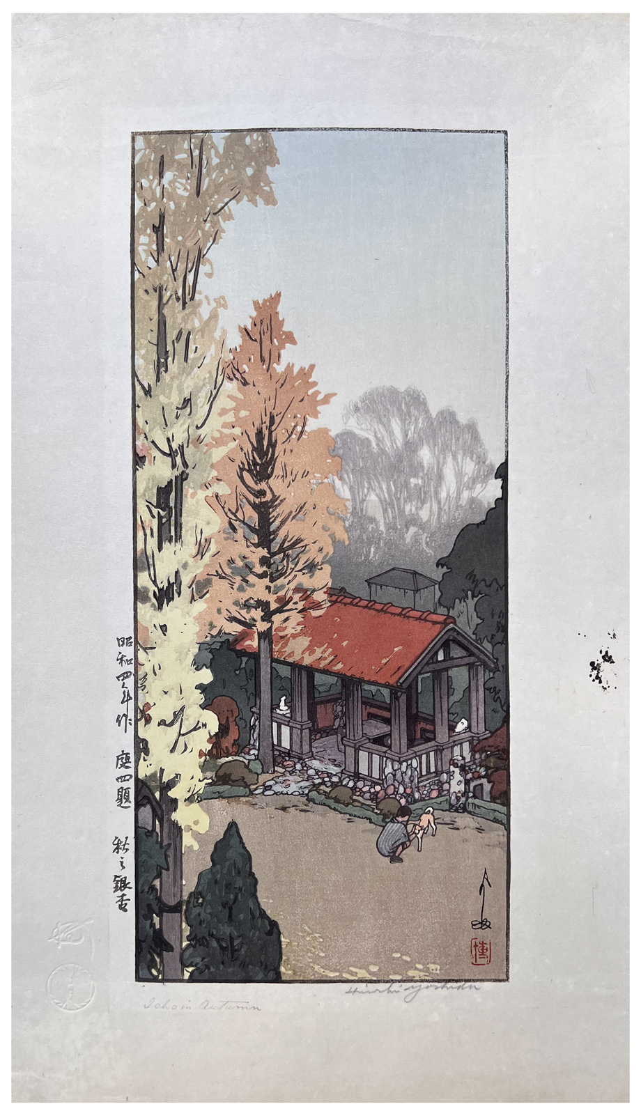 Notes: This print is among the few ones that do not have a Jizuri seal although the signature is hand written with pencil, consistent with an original Hiroshi Yoshida print. (Later printings have a stamped "hand written" style signature)