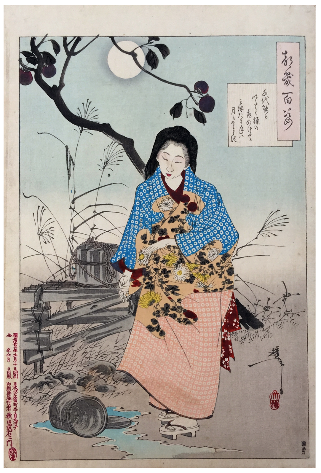 Woodblock Prints Title: One Hundred Aspects of the Moon # 74 Lady Chiyo and the broken water bucket
