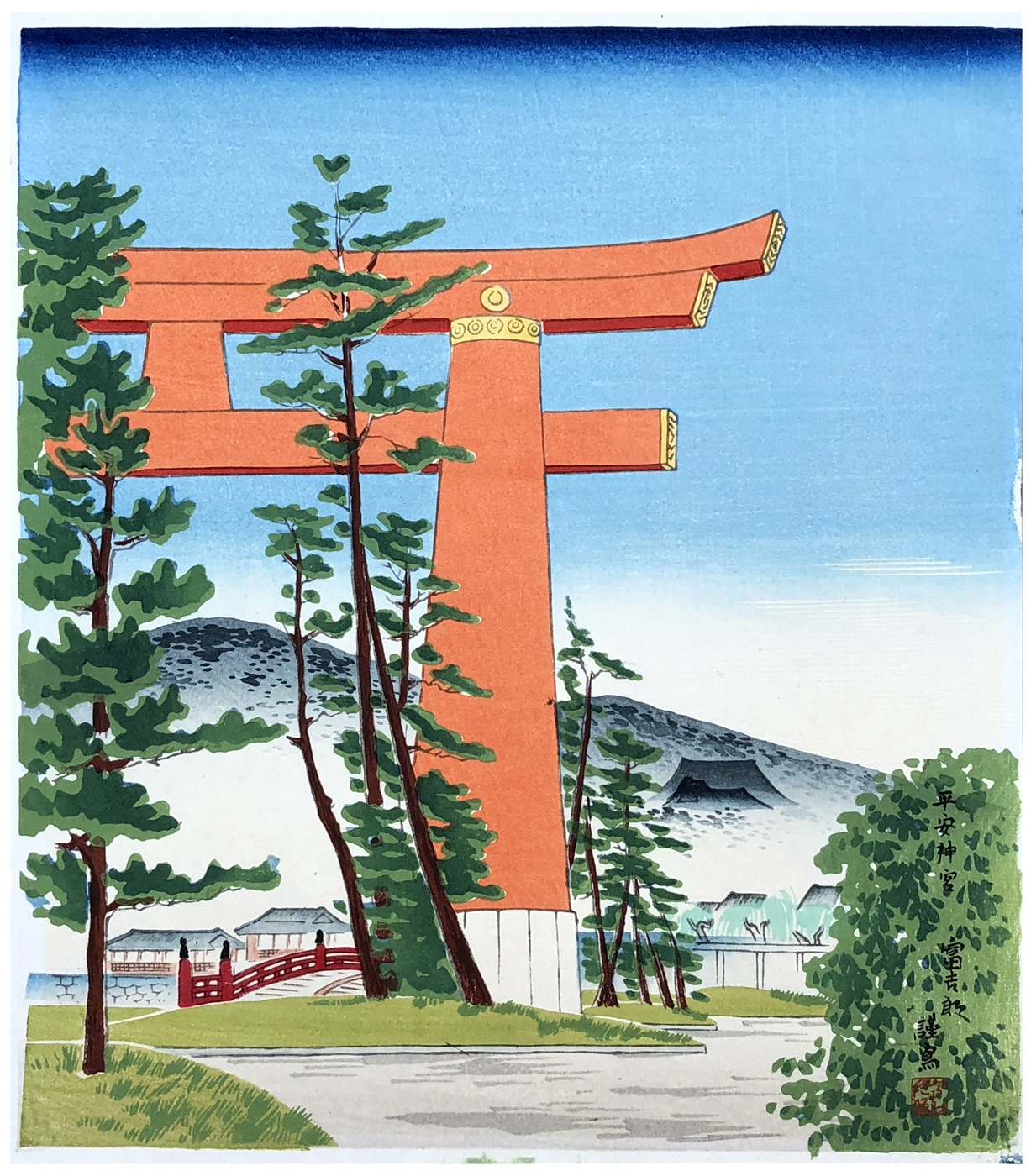 Woodblock Print Title: Large Torii of Heian Shrine from the series, "Hanga Kyoraku Ju-go Kei" (Fifteen Views of Kyoto)