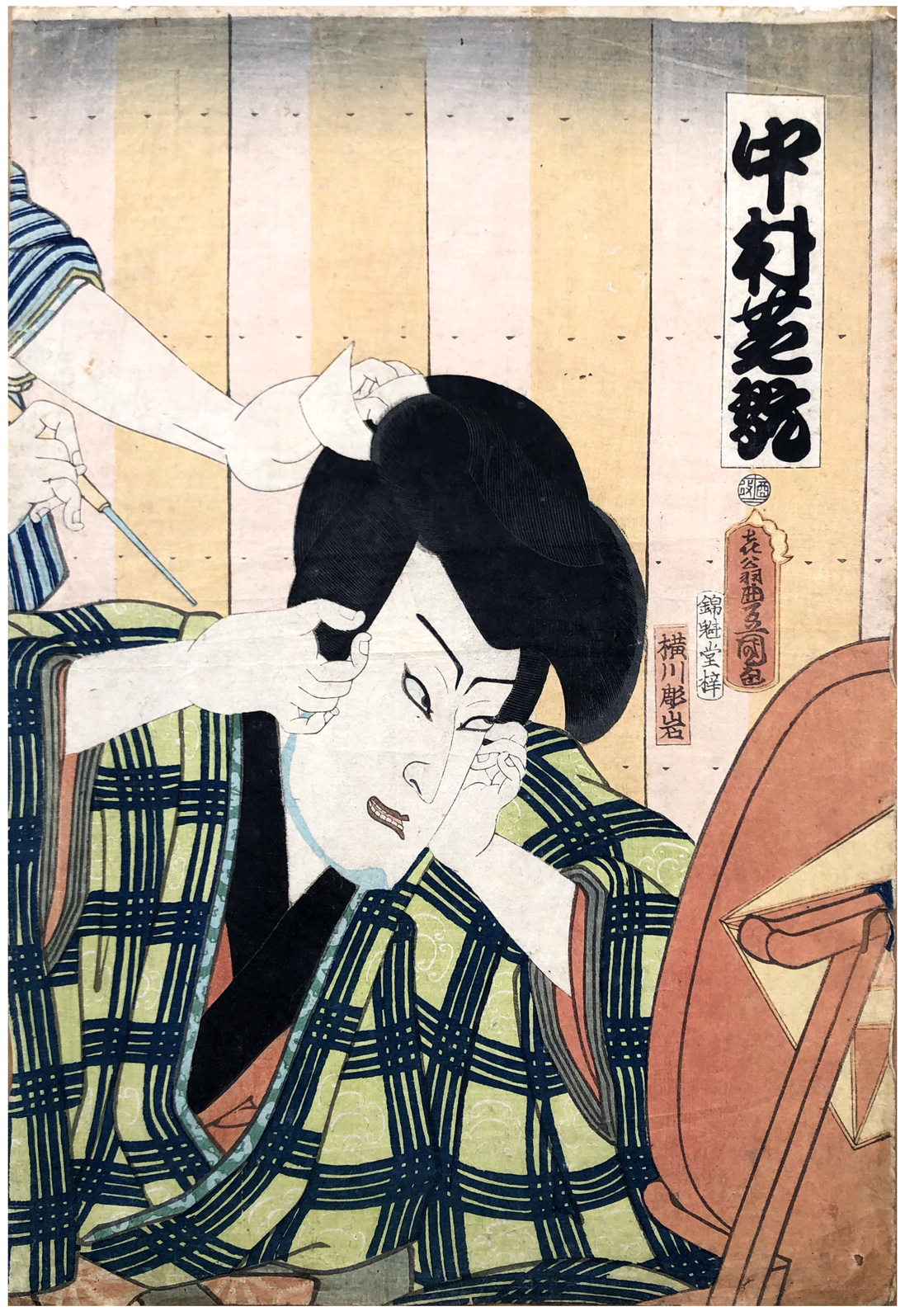 Condition: One worm hole, remnants from prior mounting (Tape), mild soiling.
