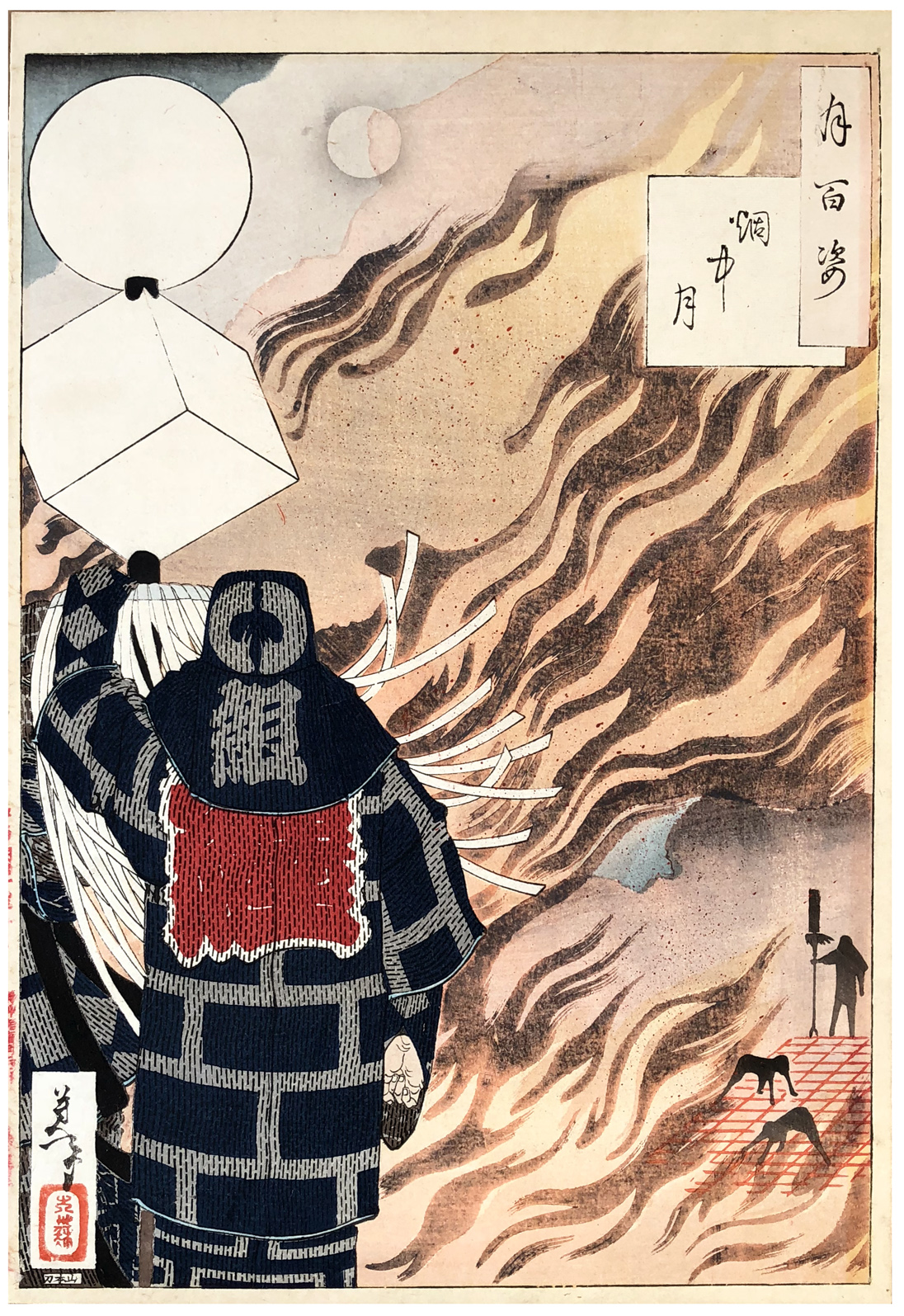 Woodblock Prints Title: One Hundred Aspects of the Moon # 22 Moon and Smoke (Enchu no tsuki)