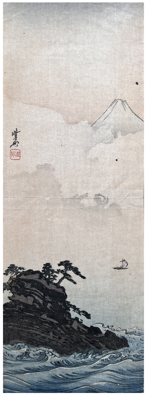 Woodblock Print Title: Mt Fuji and Coastal Island