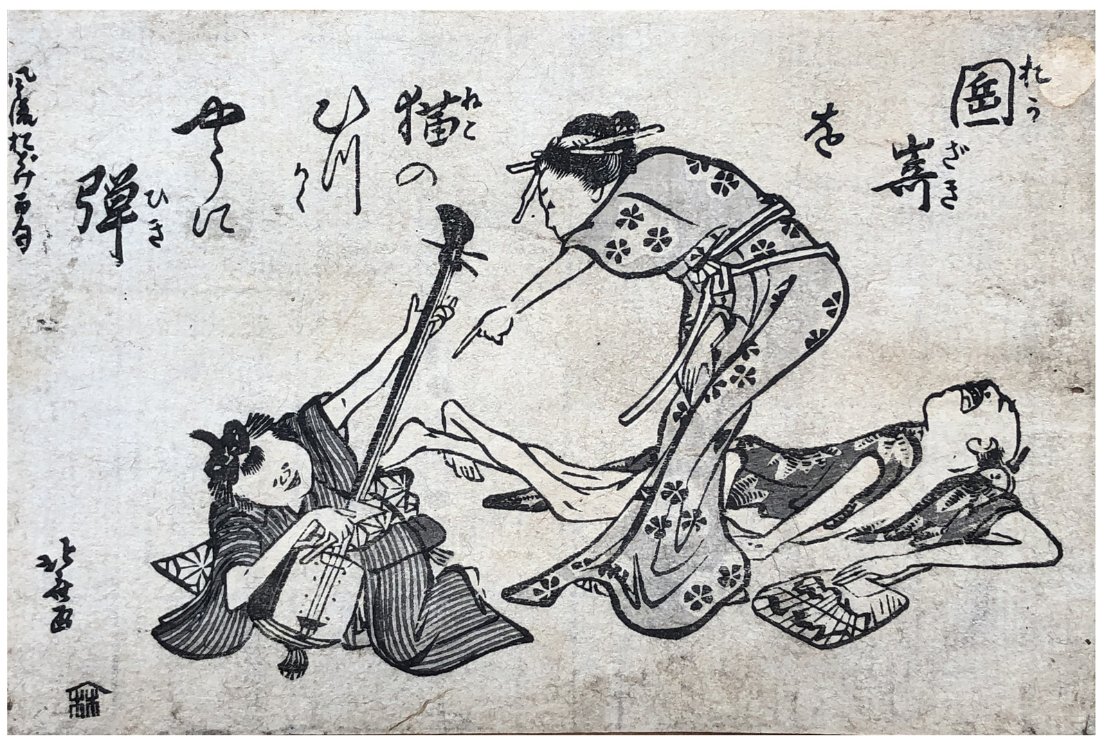 Woodblock Print Title: Musical Discord, from the series One Hundred Comic Poems (Furyu odoke hyakku)