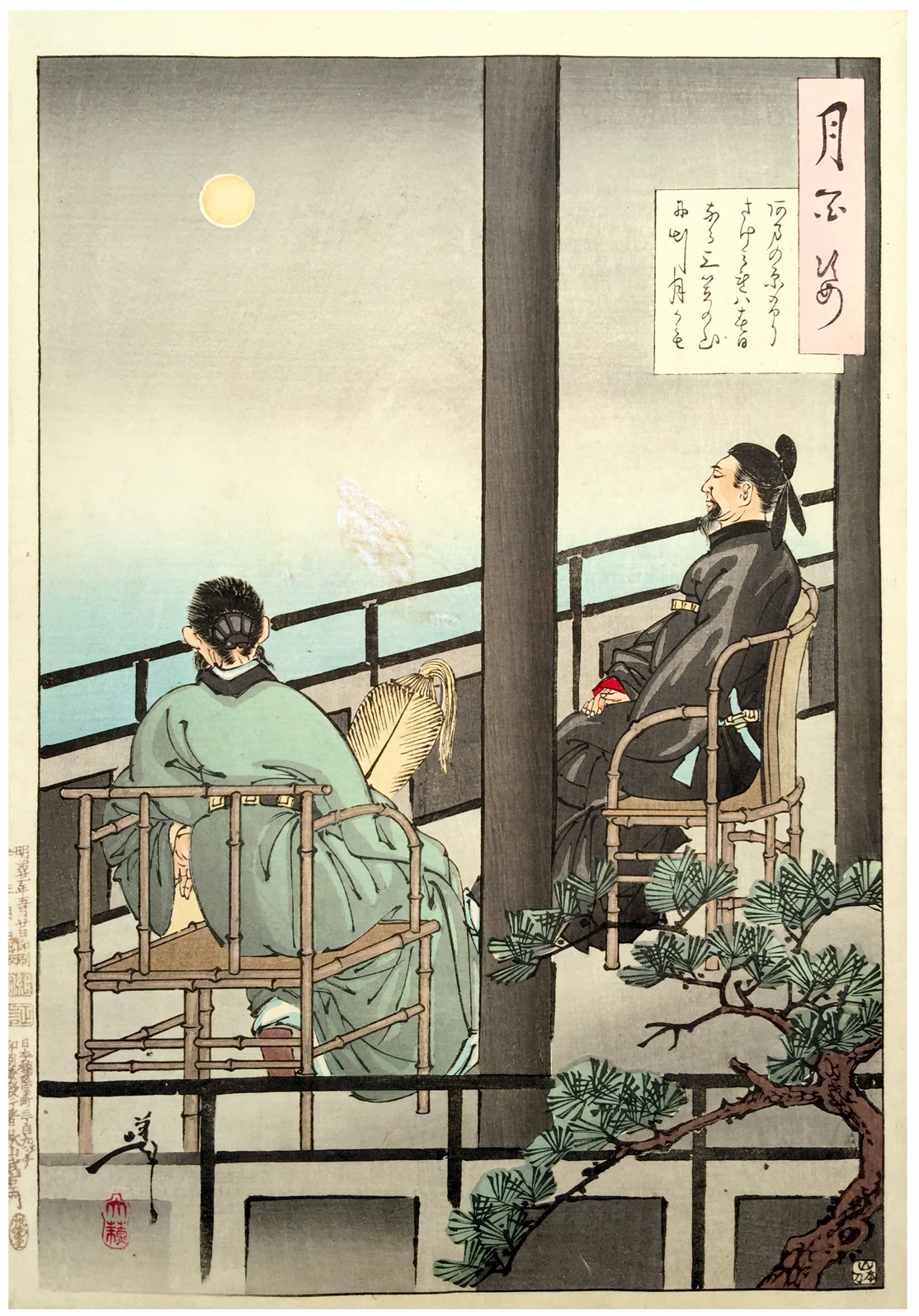 Woodblock Prints Title: One Hundred Aspects of the Moon # 64 Nakamaro views the moon in China