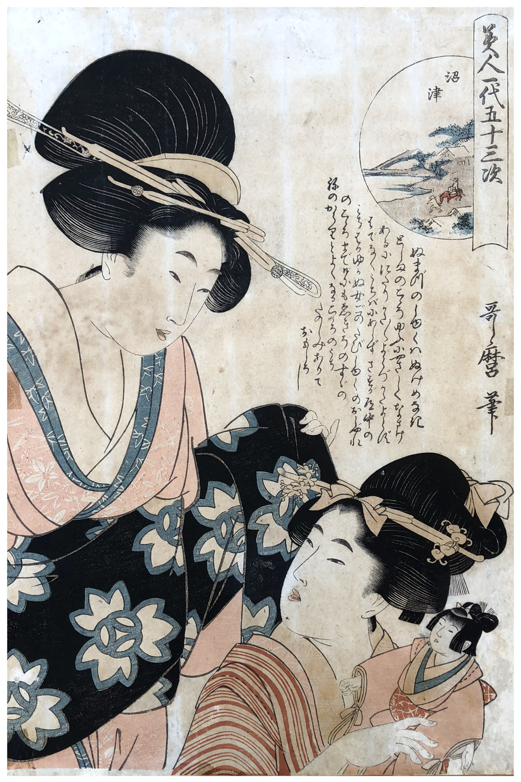 Woodblock Print Title: Namazu, from the comparison of beauties from the 53 stations of the tokaido series ( Bijin ichidai gojusan tsugi )
