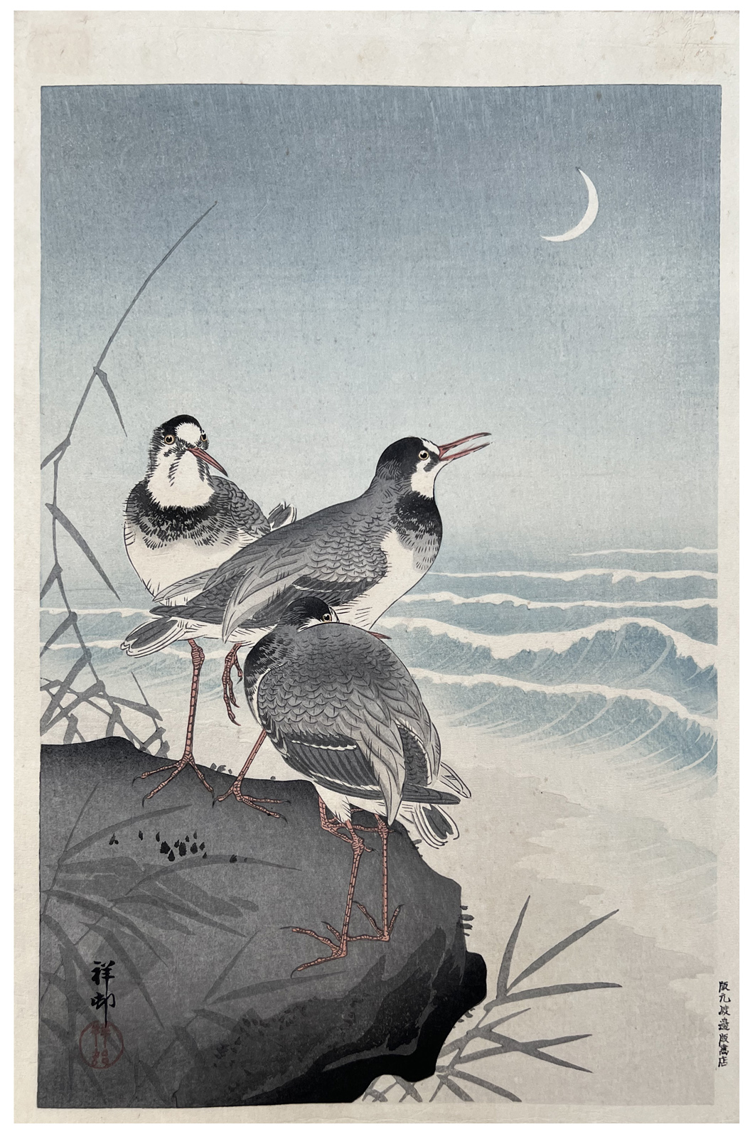 Woodblock Print Title: Plover near Seaside