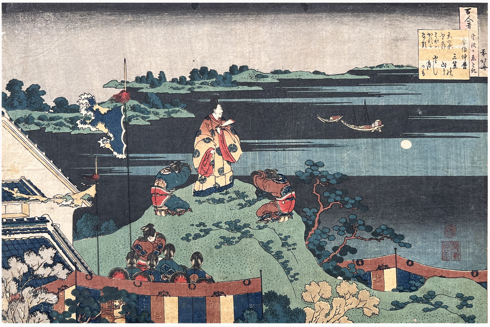 Woodblock Print Title: Poem by Abe no Nakamaro, from the series One Hundred Poems Explained by the Nurse (Hyakunin isshu uba ga etoki)