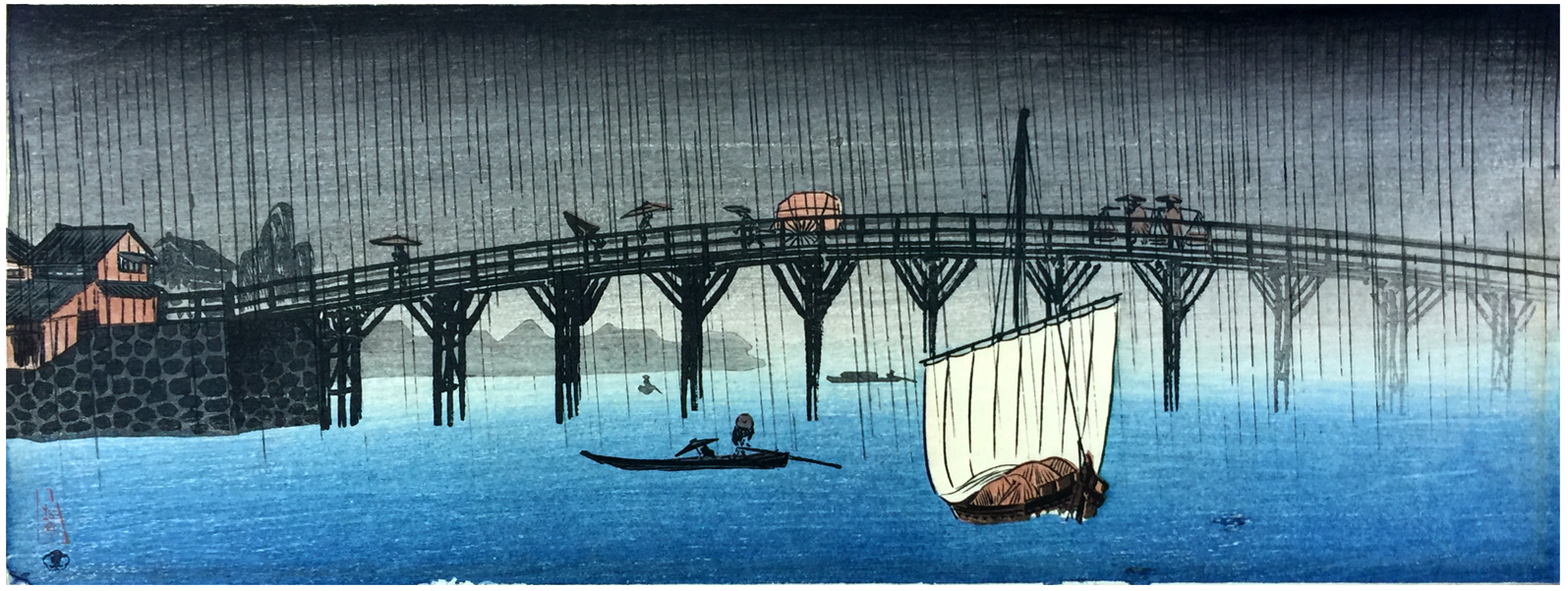 Woodblock Prints Title: Rain over Makura Bridge