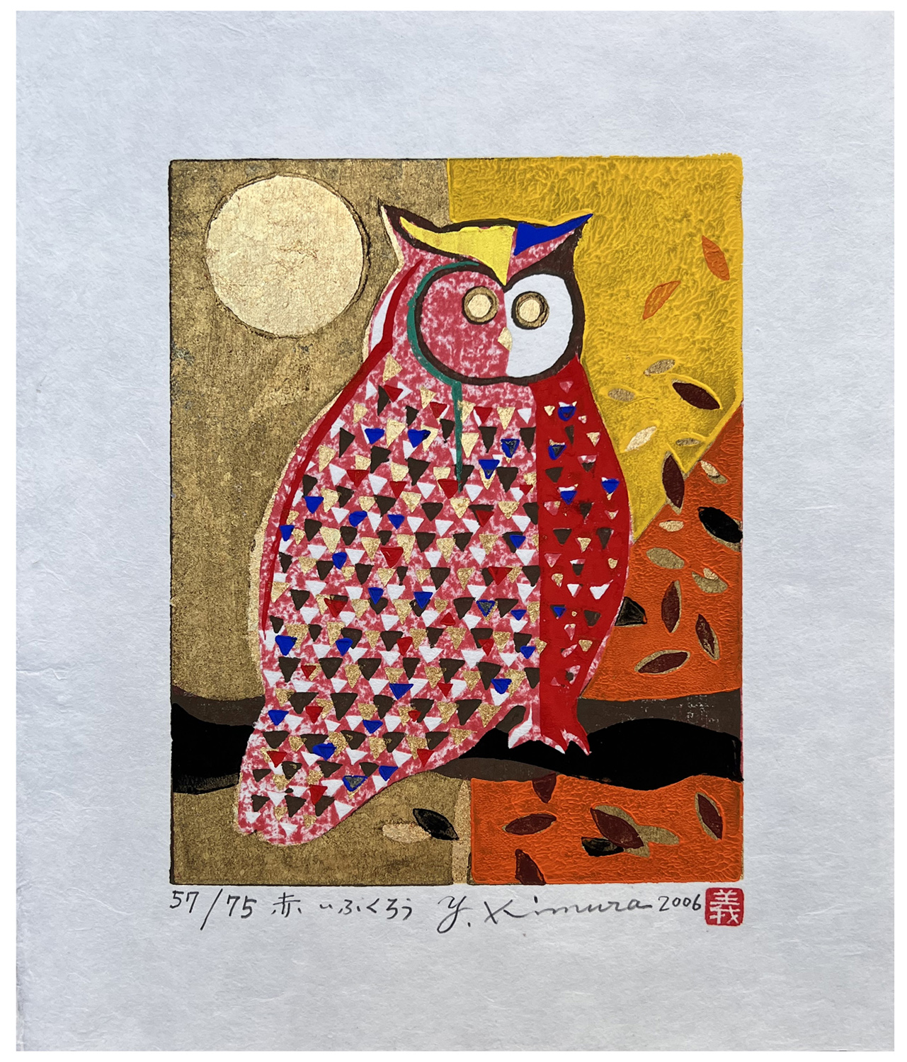 Woodblock Print Title: Red Owl