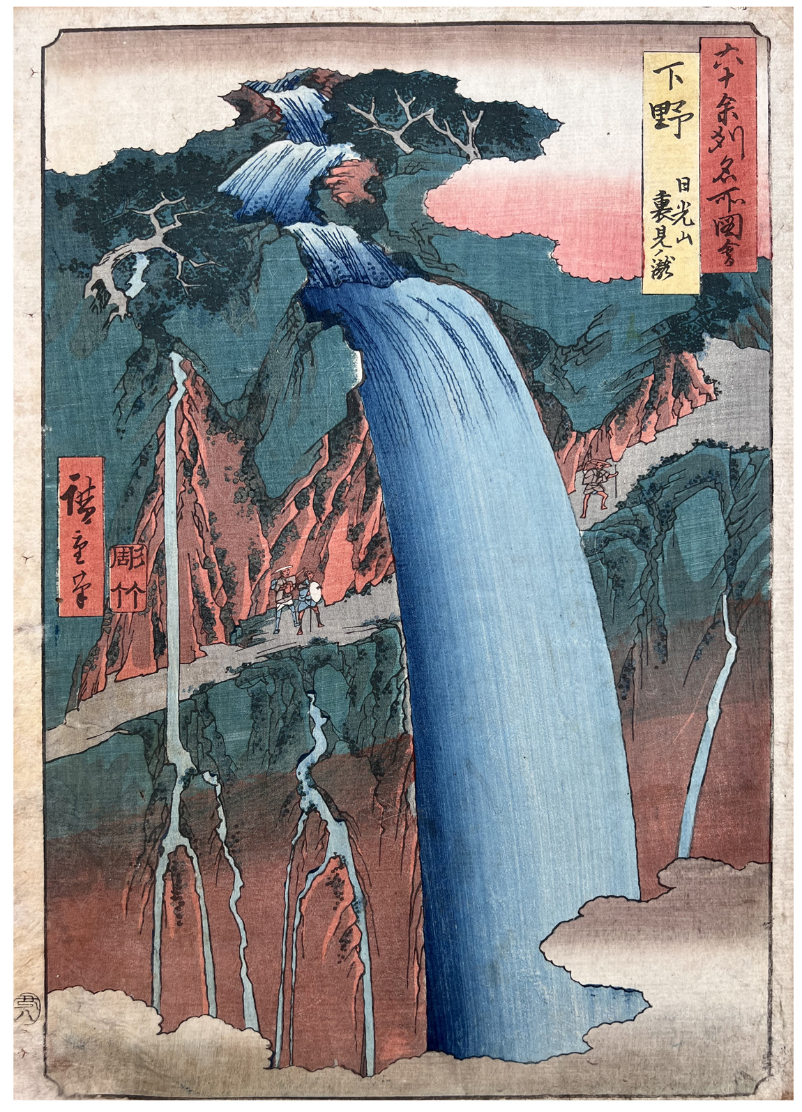 Woodblock Print Title: Shimotsuke Province: Mount Nikko, Urami Waterfall (Shimotsuke, Nikkosan, Urami no taki), from the series Famous Places in the Sixty-odd Provinces