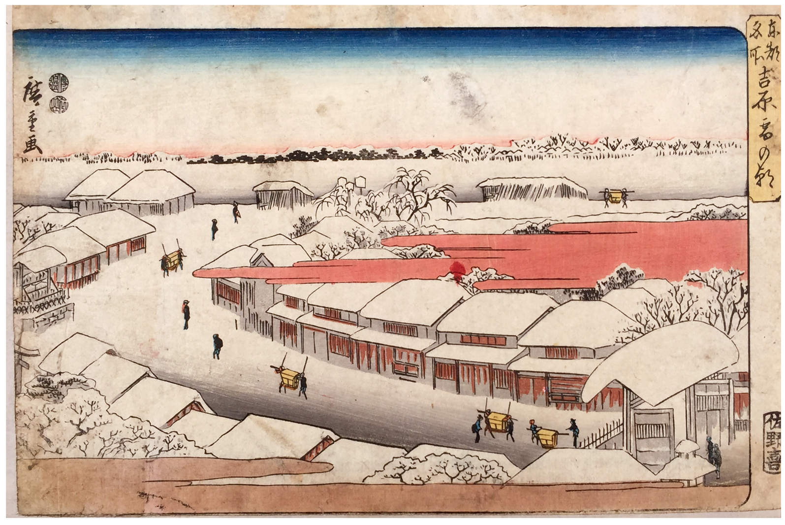 Woodblock Prints Title: Snowy Morning in the Yoshiwara (Yoshiwara yuki no asa), from the series Famous Places in the Eastern Capital (Tôto meisho)