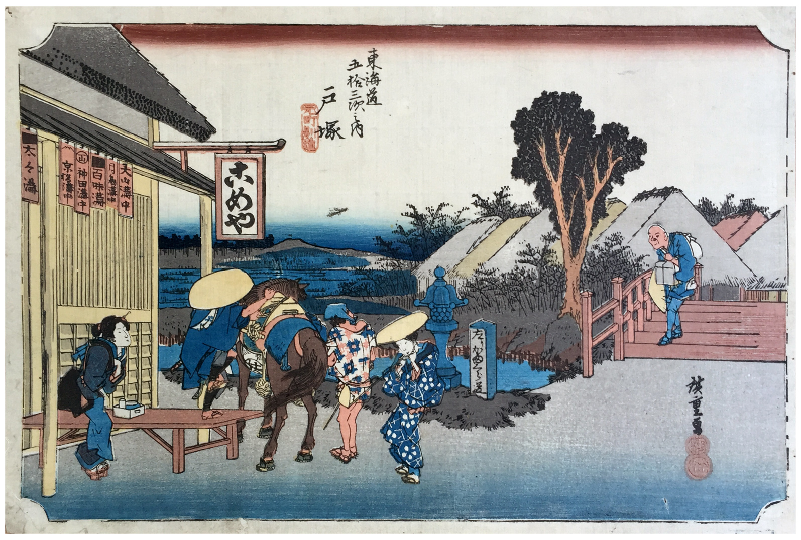 Woodblock Prints Title: Totsuka: Motomachi Fork (Totsuka, Motomachi betsudô), second version, from the series Fifty-three Stations of the Tôkaidô Road (Tôkaidô gojûsan tsugi no uchi), also known as the First Tôkaidô or Great Tôkaidô