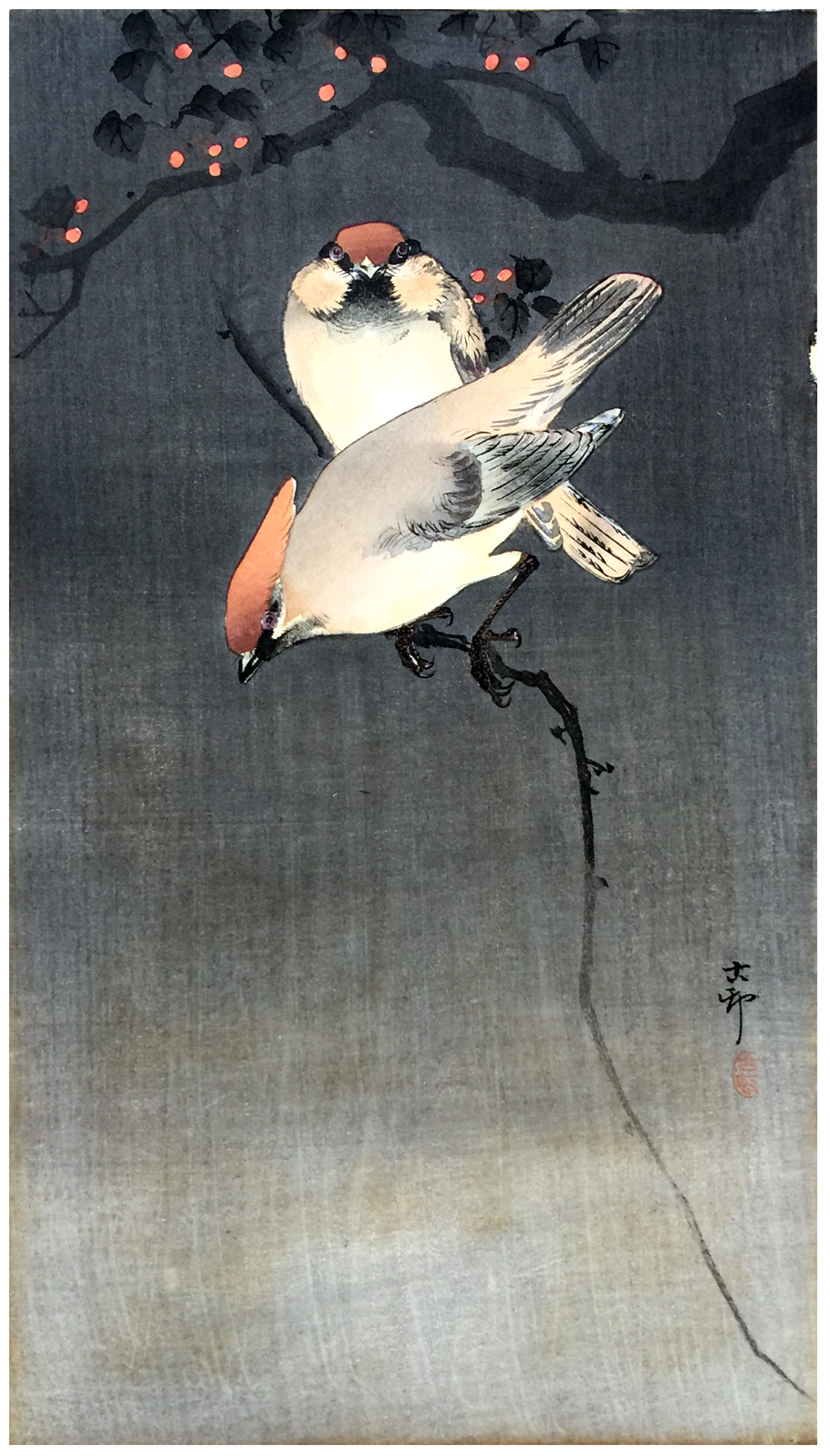 Two Waxwing by Ohara Koson