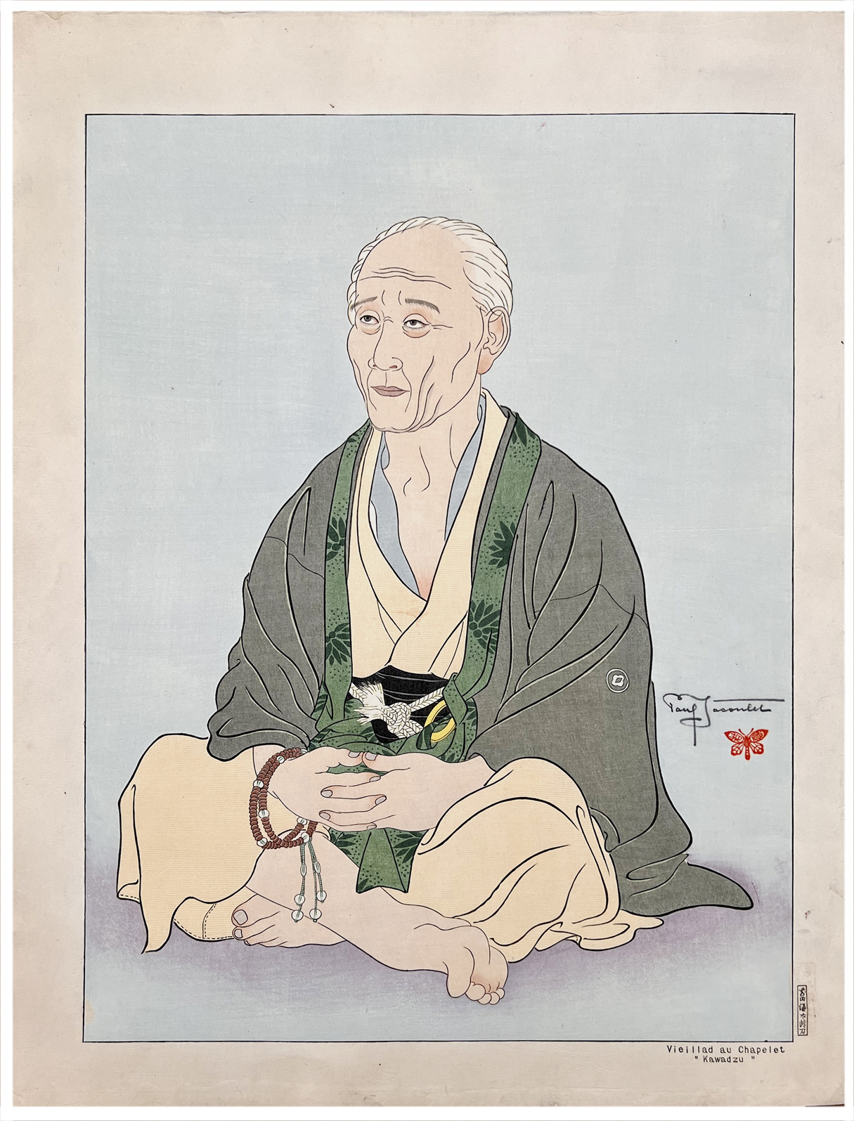 Woodblock Print Title: Vieillard au Chapelet