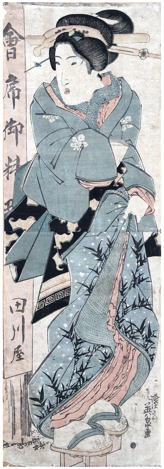 Woodblock Print Title: Woman at the Tagawaya Restaurant